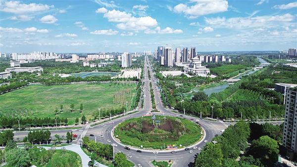 近年來(lái),我市城市建設(shè)取得顯著成效。圖為藍(lán)天白云映襯下的周口市城鄉(xiāng)一體化示范區(qū)。 記者 梁照曾 攝