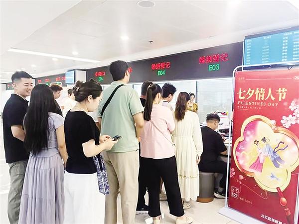 近年來,隨著人們對傳統(tǒng)節(jié)日和文化的重視,像七夕節(jié)這樣富有文化內(nèi)涵的傳統(tǒng)節(jié)日,成為新人辦理結(jié)婚登記的熱門選擇。此外,因諧音寓意美好而備受青睞的“520”“521”等“數(shù)字節(jié)日”,也保持著較高的結(jié)婚登記熱度。為積極應(yīng)對此次結(jié)婚登記高峰,確保每對新人都能高效、便捷、順利地完成結(jié)婚登記,川匯區(qū)民政局婚姻登記處提前制訂了工作預(yù)案。