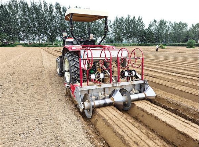 9月4日,在淮陽(yáng)區(qū)臨蔡鎮(zhèn)吳金鋒家庭農(nóng)場(chǎng)種植基地,一臺(tái)集旋耕、施肥、起壟、播種于一體的北斗導(dǎo)航農(nóng)業(yè)機(jī)械正在播種蘿卜。據(jù)了解,使用這種設(shè)備播種,可大幅提高播種效率。記者 付永奇 攝