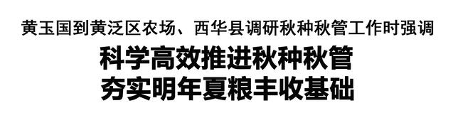 本報訊 (記者 王艷) 11月11日,市委書記黃玉國到黃泛區(qū)農(nóng)場、西華縣調(diào)研秋種秋管工作。他強調(diào),要深入學(xué)習(xí)貫徹習(xí)近平總書記關(guān)于“三農(nóng)”工作的重要論述和在河南考察時重要講話精神,堅決扛穩(wěn)扛牢糧食安全責(zé)任,科學(xué)高效推進(jìn)秋種和田間管理,確保種足種好小麥,為明年夏糧豐收奠定堅實基礎(chǔ)。