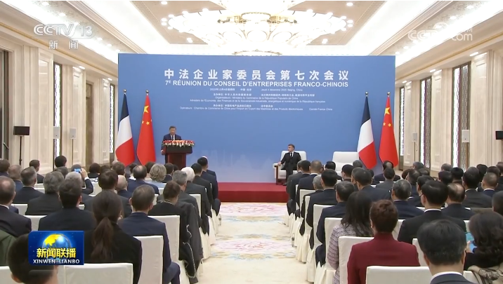 12月4日中午,國家主席習近平在北京同法國總統(tǒng)馬克龍共同出席中法企業(yè)家委員會第七次會議閉幕式并致辭。