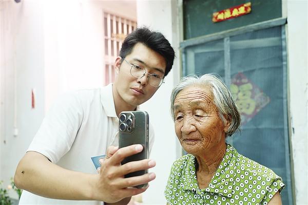 在淮陽(yáng)區(qū)王店街道祝寨村,返鄉(xiāng)大學(xué)生周宏領(lǐng)為老人完善身份信息。近日,淮陽(yáng)區(qū)開(kāi)展80歲以上老人津貼系統(tǒng)信息更新工作,為確保政策精準(zhǔn)落實(shí),老人需提供最新身份信息。