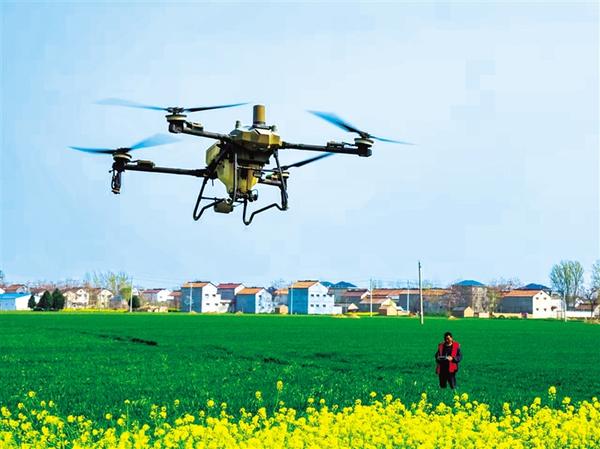 近日,在鹿邑縣玄武鎮(zhèn)解樓行政村的麥田上,一架無人機正在開展精準飛防作業(yè)。時值小麥抽穗期,當?shù)剞r(nóng)業(yè)部門組織專業(yè)化防治隊伍,采用“一噴三防”技術(shù),通過無人機對小麥實施病蟲害防治、葉面肥噴施等綜合管理。
