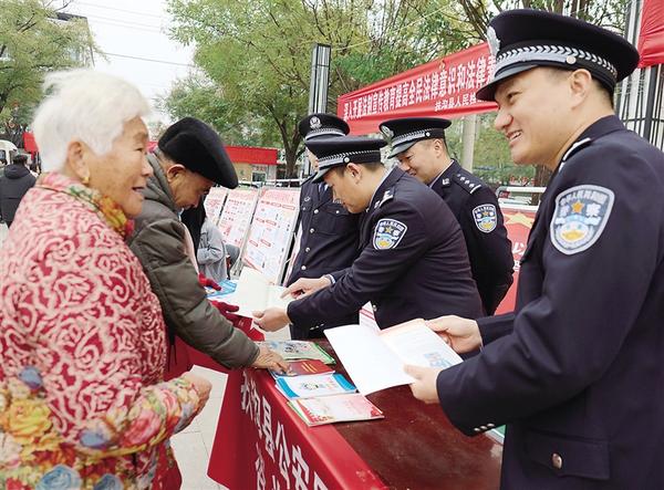 民警向群眾發(fā)放宣傳資料。2024年12月1日~12月7日是第七個“憲法宣傳周”。為大力弘揚(yáng)憲法精神,營造崇尚憲法、學(xué)習(xí)憲法、宣傳憲法、遵守憲法、維護(hù)憲法的濃厚氛圍,連日來,扶溝縣公安局積極組織民警到大程文化廣場開展集中宣傳活動。