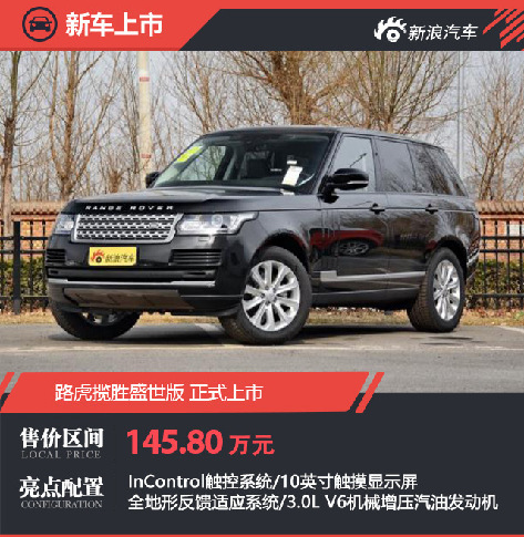 今日,路虎宣布攬勝盛世版正式上市,指導售價為145.80萬元?!?a href="http://m.educationeddy.com/content/2017-10/12/content_578072.htm" target="_blank" >[詳細]