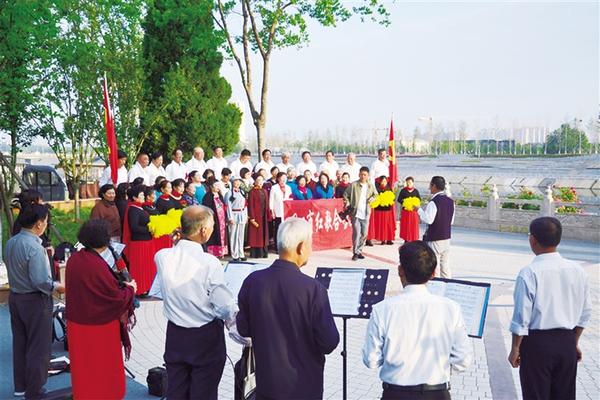 4月27日,周口市退伍軍人合唱團(tuán)到川匯區(qū)太昊路老年護(hù)理院慰問演出。合唱團(tuán)成員與老人一起演唱《我的祖國》。