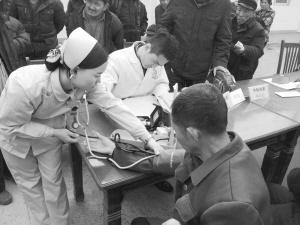 昨日,周口經(jīng)濟(jì)開發(fā)區(qū)組織醫(yī)務(wù)人員為轄區(qū)內(nèi)的五保戶義診。為讓轄區(qū)內(nèi)的五保戶感受到大家庭的溫暖,該區(qū)通過定期開展系列看望慰問活動為老人送去愛心和關(guān)懷。                                                                     (記者 沈湛 攝)