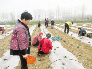 周營鄉(xiāng)積極調(diào)整種植結(jié)構(gòu),因地制宜發(fā)展高效農(nóng)業(yè)種植,引導(dǎo)群眾搞小弓棚西瓜種植,畝均收入6000余元。4月2日,該鄉(xiāng)王寨村農(nóng)民正移栽西瓜苗。