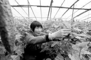 昨日,商水縣東城辦事處農(nóng)戶正忙著給大棚黃瓜吊蔓。該縣充分發(fā)揮城郊優(yōu)勢(shì),大力發(fā)展反季節(jié)、無(wú)公害蔬菜種植,畝均收入近萬(wàn)元,不僅豐富了市民的菜籃子,而且鼓起了菜農(nóng)的錢(qián)袋子。