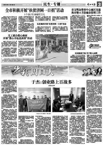 回顧自己的創(chuàng)業(yè)生涯,于杰認(rèn)為無(wú)論做人還是做事,一定要自信。“作為一個(gè)周口人,我感到很驕傲很自豪,周口是一個(gè)人杰地靈的地方,有很深厚的文化底蘊(yùn),五千年的周口文化讓我非常自信。只要有自信、有理想、能堅(jiān)持就沒(méi)有完成不了的目標(biāo),周口人到哪都不差,到哪都能成功!”于杰如是說(shuō)。