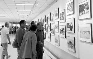 市老年人體育詩(shī)書(shū)畫(huà)攝影展迎來(lái)了眾多參觀者。(記者 王映 攝)