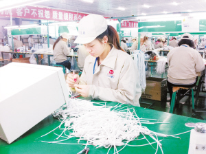 昨日,在三星手機耳機供應商日立亞電子淮陽有限公司生產(chǎn)車間,工人們正在生產(chǎn)線上忙碌著?;搓柨h近年來積極實施“工業(yè)強縣、旅游突破、城鄉(xiāng)統(tǒng)籌、四化同步”發(fā)展戰(zhàn)略,不斷調(diào)整工業(yè)產(chǎn)業(yè)結(jié)構(gòu),增加企業(yè)科技含量,以提升產(chǎn)品質(zhì)量和市場競爭力,促進經(jīng)濟轉(zhuǎn)型升級。(記者 侯俊豫 攝)
