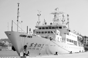 “東方紅2號(hào)”海洋綜合調(diào)查船赴南海進(jìn)行科學(xué)考察 5月10日,“東方紅2號(hào)”調(diào)查船在國家海洋局青島海洋科學(xué)考察基地碼頭整裝待發(fā)。當(dāng)日,“東方紅2號(hào)”海洋綜合調(diào)查船從國家海洋局青島海洋科學(xué)考察基地啟航,赴南海進(jìn)行為期兩個(gè)月的科學(xué)考察。新華社記者 張建松 攝