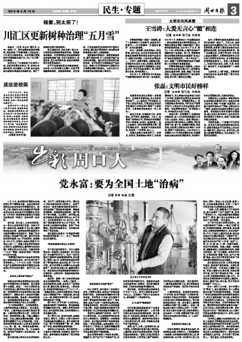 “近年來(lái)土壤酸化板結(jié)速度加快,所有土地遭受不同程度的農(nóng)資次生災(zāi)害。建議各級(jí)黨委和政府及有關(guān)部門(mén)應(yīng)盡早重視土地污染治理工作,牽頭組織相關(guān)部門(mén),爭(zhēng)取盡快在全市范圍內(nèi)宣傳、推廣和應(yīng)用土地污染治理技術(shù),逐步向全國(guó)受污染的土地開(kāi)戰(zhàn),為子孫留下更多的凈土。”黨永富說(shuō),這是他的夢(mèng)想。