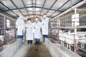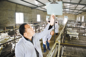 孫振偉原是當(dāng)?shù)刂那嗄昶髽I(yè)家,2008年初被西關(guān)村居民高票選舉為村黨支部書(shū)記,憑著對(duì)家鄉(xiāng)的強(qiáng)烈責(zé)任感和保護(hù)槐山羊特色品種的使命感,孫振偉帶領(lǐng)西關(guān)村立足本村作為槐山羊傳統(tǒng)養(yǎng)殖區(qū)的優(yōu)勢(shì),于2010年成立沈丘縣槐山羊養(yǎng)殖發(fā)展有限公司,在省畜牧展交易會(huì)上,與鄭州鄭源公司合作,共同簽約了投資6000萬(wàn)元建設(shè)槐山羊原種保護(hù)、繁育、深加工項(xiàng)目。同時(shí)與華中農(nóng)大建立技術(shù)合作關(guān)系,投資800萬(wàn)元建成“槐山羊原種保護(hù)和繁育中心”,規(guī)劃設(shè)計(jì)了化驗(yàn)室、消毒室、提純復(fù)壯室、品種基因室等配套規(guī)范設(shè)施,不僅為國(guó)家級(jí)優(yōu)良品種槐山羊的保種提純工作提供了科研平臺(tái)和寶貴數(shù)據(jù)庫(kù),“槐山羊提純復(fù)壯良種繁育技術(shù)研究與應(yīng)用”成果還獲得2013年度周口市科技進(jìn)步一等獎(jiǎng)。經(jīng)過(guò)提純復(fù)壯,目前中心存欄特征明顯的槐山羊母羊860只、種公羊36只,在此基礎(chǔ)上,計(jì)劃建成占地100畝的槐山羊養(yǎng)殖小區(qū),槐山羊板皮、肉制品等深加工項(xiàng)目都已經(jīng)開(kāi)始實(shí)施。 “這些是經(jīng)過(guò)第五輪提純復(fù)壯繁育的槐山羊,目前可以說(shuō)是最純種的槐山羊了?!睂O振偉指著一批剛出生的小羊向我們介紹。