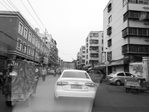 商戶在六一路上私拉亂扯的電線垂落,距離地面不足兩米,嚴重影響車輛通行。