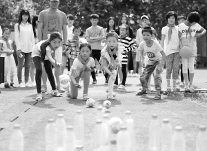 安徽亳州:留守兒童大學(xué)校園歡樂(lè)迎“六一” 5月24日,在安徽省亳州職業(yè)技術(shù)學(xué)院,幾名留守兒童在玩“保齡球”游戲。當(dāng)日,安徽省亳州職業(yè)技術(shù)學(xué)院邀請(qǐng)譙城區(qū)牛集鎮(zhèn)安溜小學(xué)50多名留守兒童來(lái)到大學(xué)校園,開(kāi)展“放飛夢(mèng)想迎六一”主題活動(dòng)。大學(xué)生與孩子們一起進(jìn)行了各種趣味游戲,讓孩子們提前過(guò)了一個(gè)開(kāi)心的“六一”兒童節(jié)。新華社發(fā)