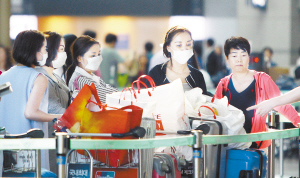 韓國又確診中東呼吸綜合征患者      5月30日,在韓國仁川國際機場,佩戴口罩的乘客排隊等候辦理登機手續(xù)。韓國保健福祉部30日例行通報說,當日新確診了1例中東呼吸綜合征患者。至此,韓國國內確診的患者已增至12人,另有一名韓國患者在中國被確診。新華社發(fā)