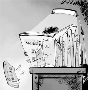 記者調(diào)查發(fā)現(xiàn),在繁重的課業(yè)負(fù)擔(dān)下,不少初高中學(xué)生所讀書籍越來越單一,教輔書占了絕大比例。智能手機(jī)的普及,各類社交平臺的出現(xiàn),更是讓學(xué)生沉溺于淺閱讀。相反,拿起名著、對話經(jīng)典等深層次閱讀的情況,卻不容樂觀。這正是: