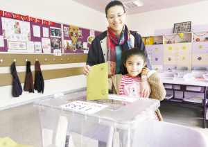 土耳其舉行議會(huì)選舉      6月7日,在土耳其首都安卡拉一個(gè)投票站,一個(gè)小女孩幫媽媽投票。土耳其議會(huì)選舉當(dāng)日開(kāi)始投票。執(zhí)政的正義與發(fā)展黨、主要反對(duì)黨共和人民黨、民族行動(dòng)黨和親庫(kù)爾德的人民民主黨在內(nèi)的20個(gè)政黨參加競(jìng)選,角逐550個(gè)議會(huì)席位。新華社發(fā)