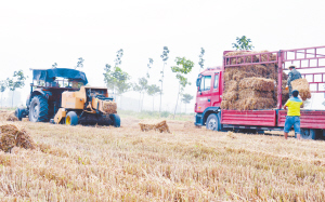 今年“三夏”,沈丘縣堅持做到進地作業(yè)機械全部安裝秸稈粉碎還田裝置,一律執(zhí)行“低留茬、細粉碎”作業(yè),對不符合作業(yè)要求的機械,及時制止并督促就地整改,達不到標(biāo)準(zhǔn)要求的地塊,責(zé)成村級組織破茬耕翻,確保秸稈粉碎還田質(zhì)量。圖為付井鎮(zhèn)境內(nèi)一輛安裝秸稈粉碎還田裝置的聯(lián)合收割機正在田間作業(yè)。(肖飛 攝)