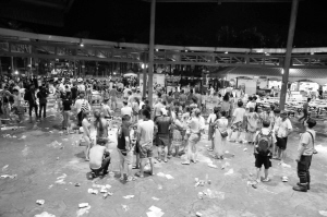 6月27日,發(fā)生爆炸后人們聚集在新北市八仙水上樂園的空地上。(新華社發(fā))