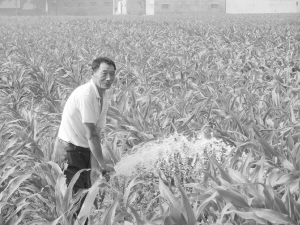 7月14日,商水縣舒莊鄉(xiāng)農(nóng)民正在澆玉米。該鄉(xiāng)廣大群眾抓住當(dāng)前田間管理關(guān)鍵時(shí)期,積極對以抗旱澆水、施肥、除草、病蟲害防治、控制旺長為主的秋田進(jìn)行管理。(喬連軍 攝)