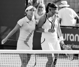 鄭潔和詹詠然今年2月開始搭檔打雙打。昨天面對(duì)兩位身高都超過(guò)1.80米的對(duì)手,她倆以穩(wěn)健多變的底線球和積極上網(wǎng)牢牢掌握著場(chǎng)上主動(dòng)權(quán),勝得十分輕松。