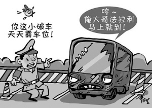 最近,在杭州市左岸花園小區(qū)門口,每天停著一輛破舊的小面包車,它的任務就是給一輛法拉利F430占車位。法拉利的車主說,家有4輛車,兩輛停家里,一輛停地下車庫,一輛停上面,但小區(qū)車位太緊張,“我也是被逼出來的!”