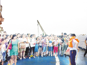 小記者在游輪上學(xué)習(xí)救生常識(shí)