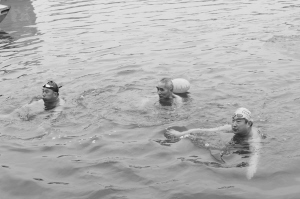 伸伸腰,扭扭腿……下水前,大家都要活動筋骨,避免發(fā)生意外。根據(jù)分組,大家按照次序來到河邊,聽到口令后,一個個魚躍河中。14歲的張毅來自許昌代表隊,賽后他激動地對記者說:“我很久之前就開始接觸游泳了,但是冬泳剛剛練習(xí)了3年,參加這樣的比賽很開心?!庇浾卟稍L發(fā)現(xiàn),冬泳愛好者比賽結(jié)束后很少關(guān)心自己的成績,他們說得最多的是“爽”。一位冬泳愛好者告訴記者,比賽成績不重要,重要的是這項運(yùn)動能培養(yǎng)人的意志力以及使人保持開朗樂觀的生活態(tài)度,這才是他所追求的。