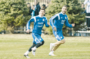 當?shù)貢r間3月24日,阿根廷隊球員梅西(左)與隊友在訓練中。當日,阿根廷隊在美國華盛頓訓練,備戰(zhàn)28日與南非隊的熱身賽。新華社發(fā)